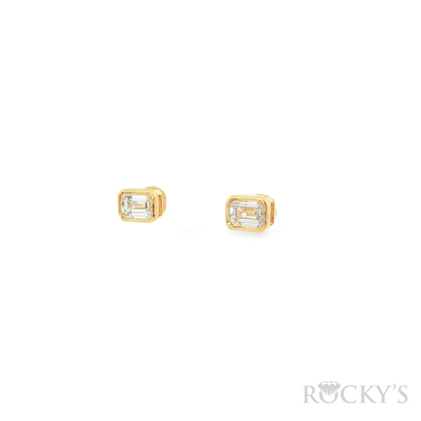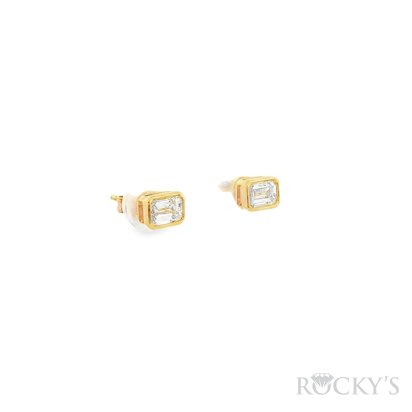 14 Karat Yellow Gold Lab Grown Diamond Bezel Set Studs with 1.03TWT Emerald Cut E/F Color VS Clarity Lab Diamonds