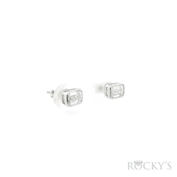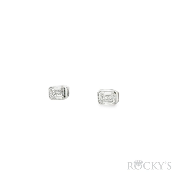 14 Karat White Gold Lab Grown Diamond Bezel Set Studs with 1.03TWT Emerald Cut E/F Color VS Clarity Lab Diamonds