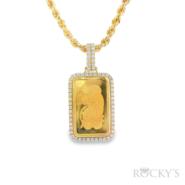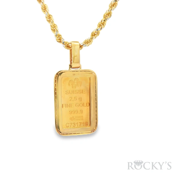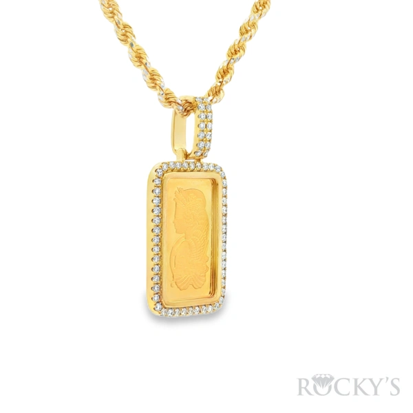 14 Karat Yellow Gold, Diamond Pendant With 0.50ctw White Diamonds, Gold Suisse Bar 2.5g, Pendant (Chain Excluded)