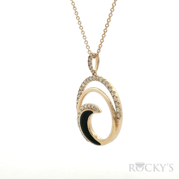 Yellow 14 Karat Diamond Necklace With 0.82Twt Half Moon shape Black Onyxs And 0.74Twt Round G/H SI White Diamonds