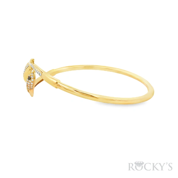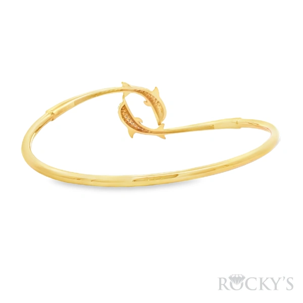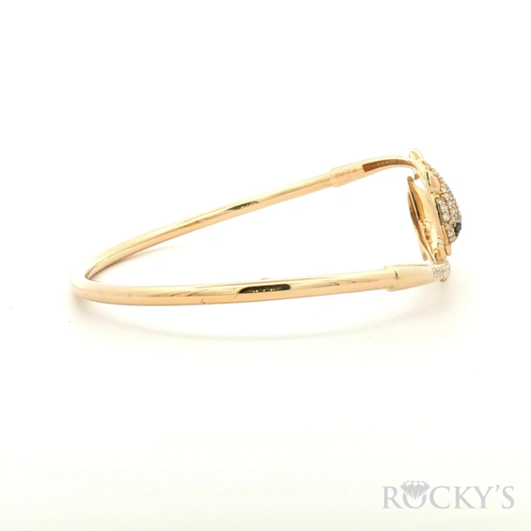 14 Karat Yellow Gold Diamond Bracelet with Fish Head 0.01TWT Round Cut Black Diamonds
