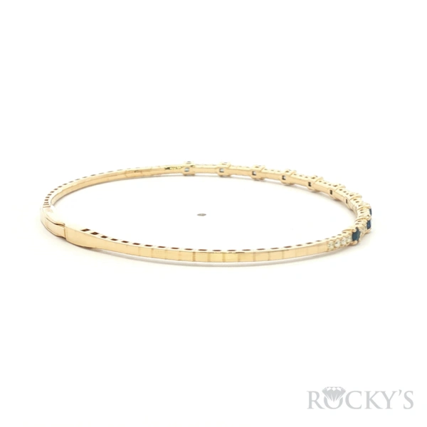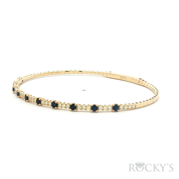 Yellow 14 Karat Diamond Flexible Bracelet With 10/ 0.67Twt Round Sapphires And 35/0.42Twt Round G/H SI White Diamonds, Wrist Size: 6.75"