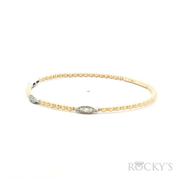 2Tone 14 Karat Diamond Flexible Bangle Bracelet with 0.21TWT Round G/H SI white Diamonds, Wrist Size: 6.75