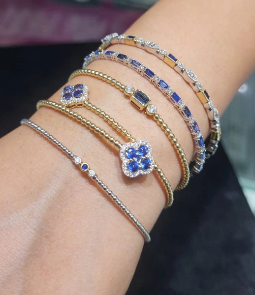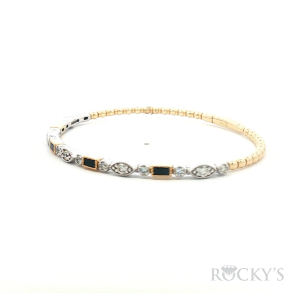 2Tone 14 Karat Color Stone Flexible Bangle Bracelet with 0.54TWT Baguette cut Blue Sapphires & 0.69TWT Round cut G/H SI White Diamonds, Wrist Size: 6.75
