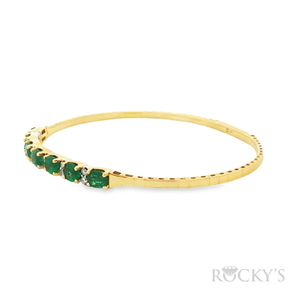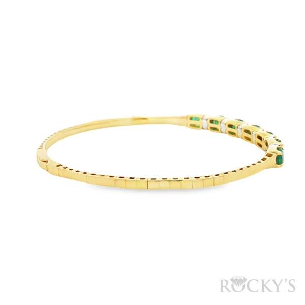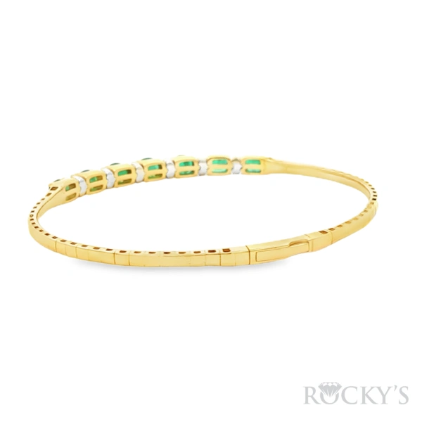14 Karat 2Tone Gold Flexible Emerald Bracelet with 7 : 2.366TWT Oval Cut Green Emeralds