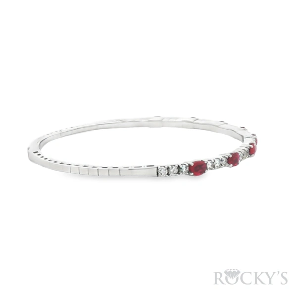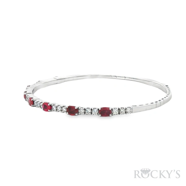 14 Karat White Gold Flexible Ruby & Diamond Bracelet With 8 :1.245Twt Oval Cut Red Rubies And 27 :0.826Twt Round Cut G/H Color & SI Clarity Diamonds