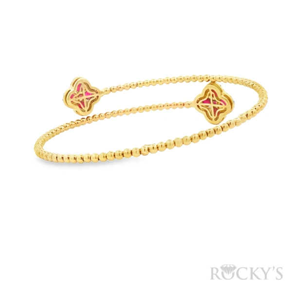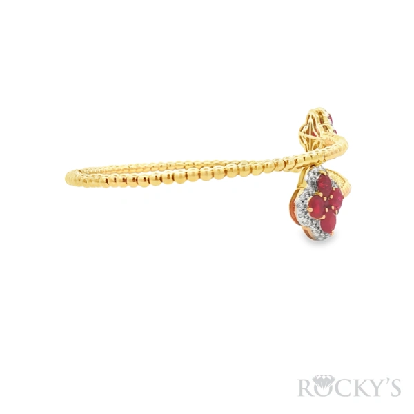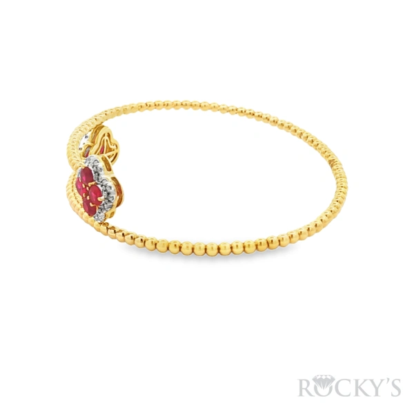 14 Karat Yellow Gold Flexible Ruby Bracelet with 10: 1.832TWT Round Cut Red Rubies & 0.322TWT Round Cut G/H Color & SI Clarity White Diamonds, Wrist Size: 6.75