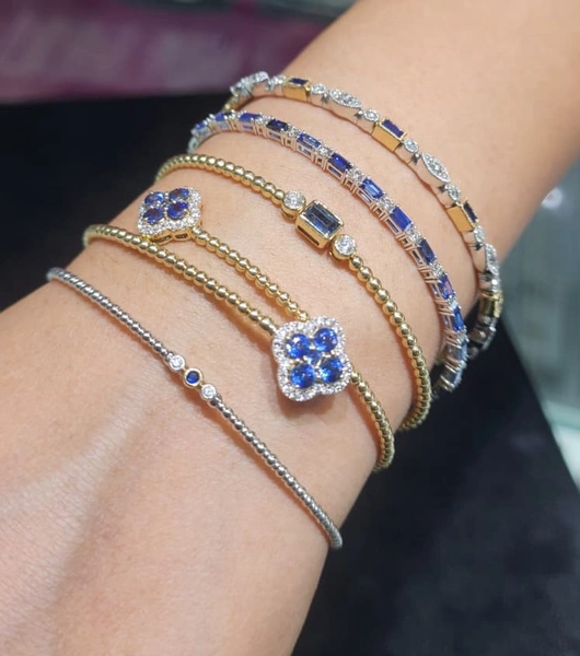 14 Karat 2Tone Gold Flexible Sapphire & Diamond Bracelet With 0.04Twt Round Cut Blue Sapphires And 0.03Twt Round Cut G/H Color & SI Clarity Diamonds