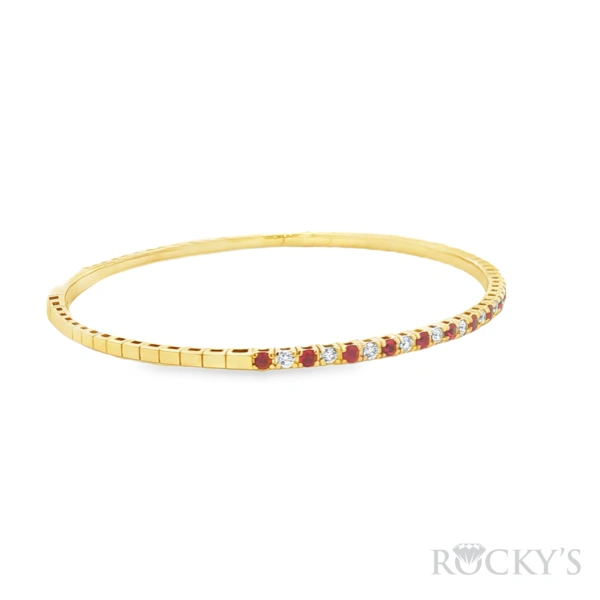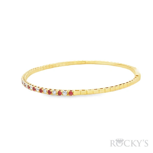 14 Karat 2Tone Gold Flexible Ruby Bracelet with 0.66TWT Round Cut Red rubies