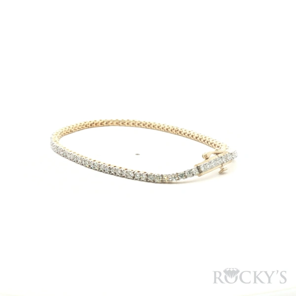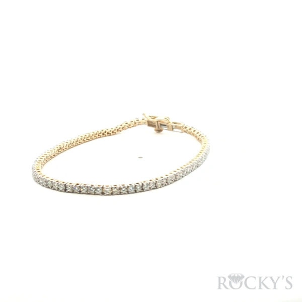 14 Karat Yellow Gold Lab Diamond tennis Bracelet, 3.00 carats E-F / VS Round Cut Lab grown diamonds. IGI Cert # 11J786602501