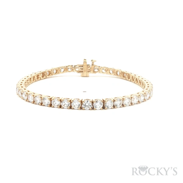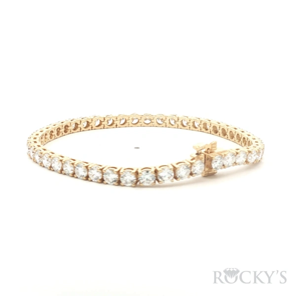 Yellow 14 Karat Lab Grown Diamond Tennis Bracelet With 45 = 9.46Tw Round E VS Lab Diamonds