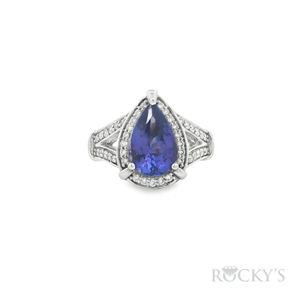 White 18k Tanzanite Ring with 2.74Tw Tanzanite and 0.35Tw Diamond