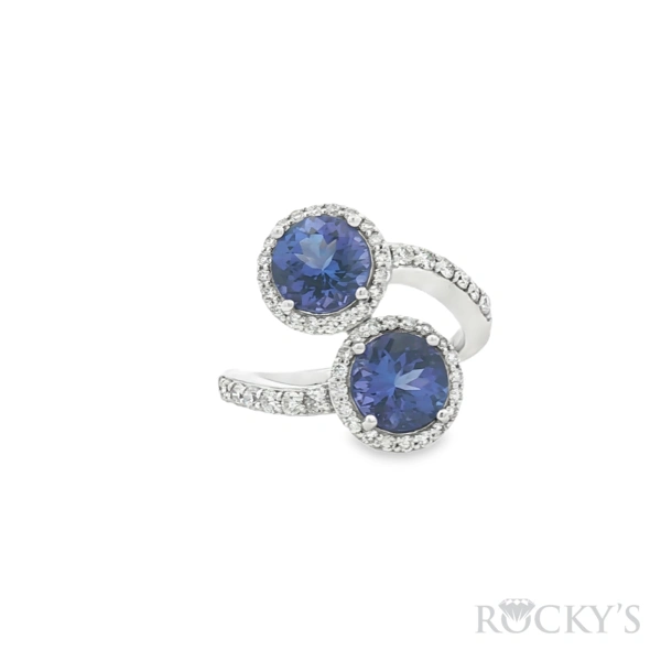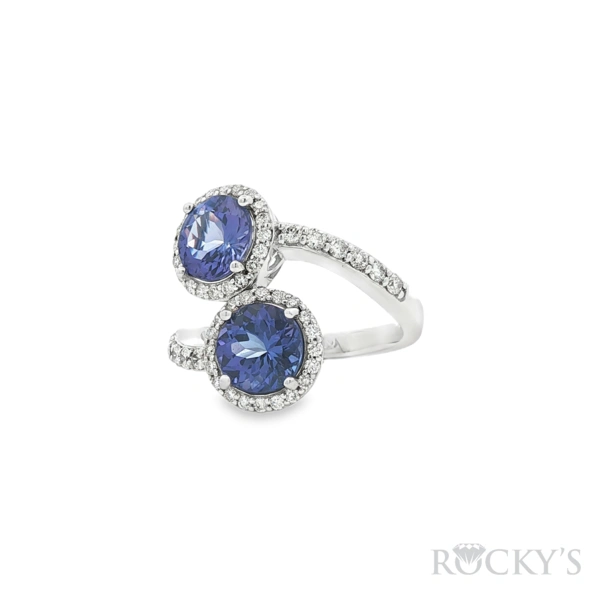 White 14k Round Edge Tanzanite Ring with 2.60Tw Round Shape Tanzanite and 0. 54Tw Round Shape Diamond and 4.97Tw Gram Weight