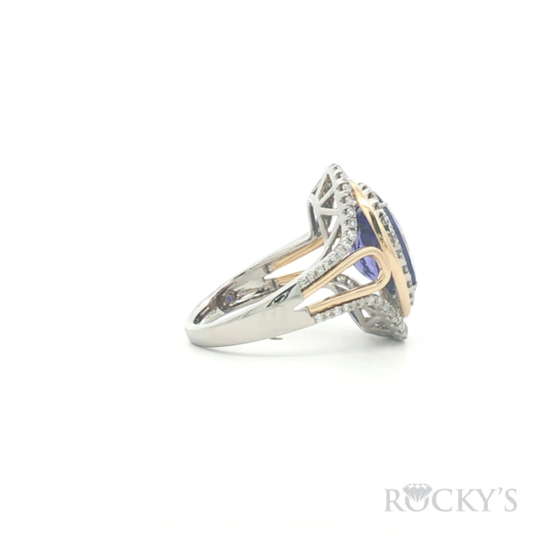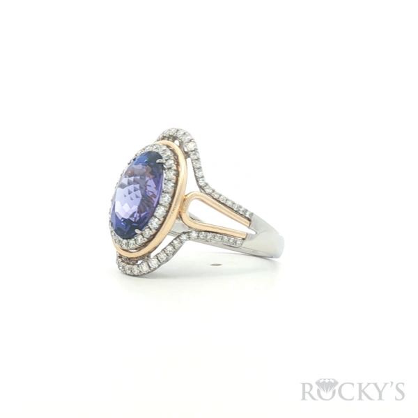 2Tone Platinum Color Stone Ring Size 7 With 0.74Tw Round I Color and Si Clarity Diamonds And 5.60Tw Oval Tanzanites