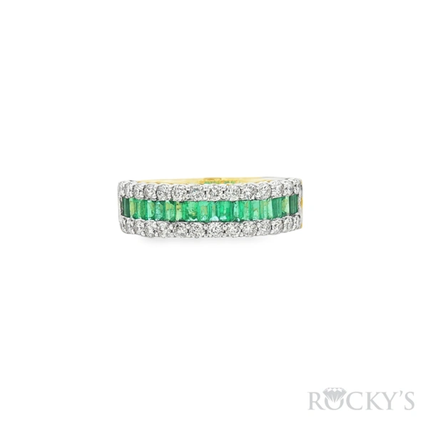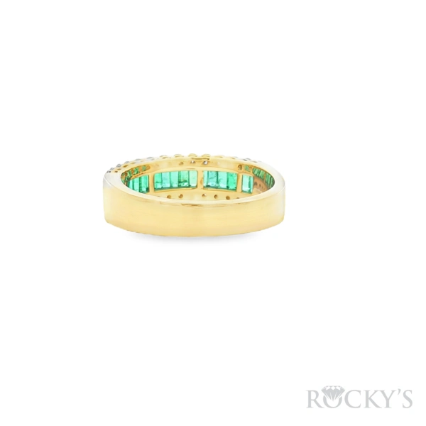 14 Karat yellow gold Color Stone Ring, Size 7, With 0.63Tw Round G/H Color & SI Clarity White Diamonds And 0.57Tw Baguette Cut Emeralds