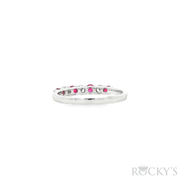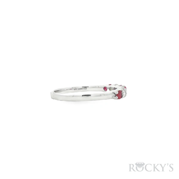 White 14 Karat Color Stone Ring Size 7.5 With 3 stone of 0.23Tw Round Gh Color and Si Clarity Diamonds And 4 stone of 0.35Tw Round Rubys