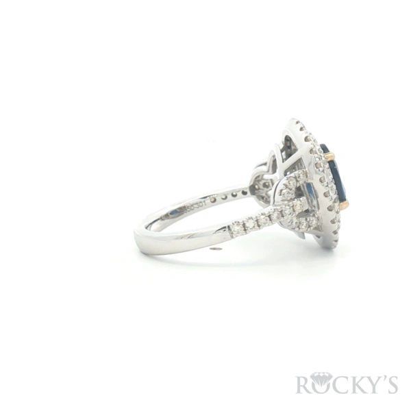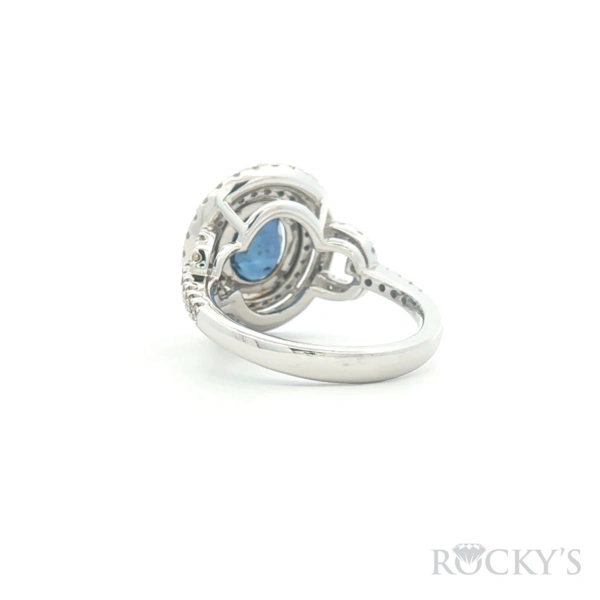 White Platinum Color Stone Ring Size 7 With 0.79Tw Round Gh Color and Si Clarity Diamonds And 2.27Tw Oval Sapphires