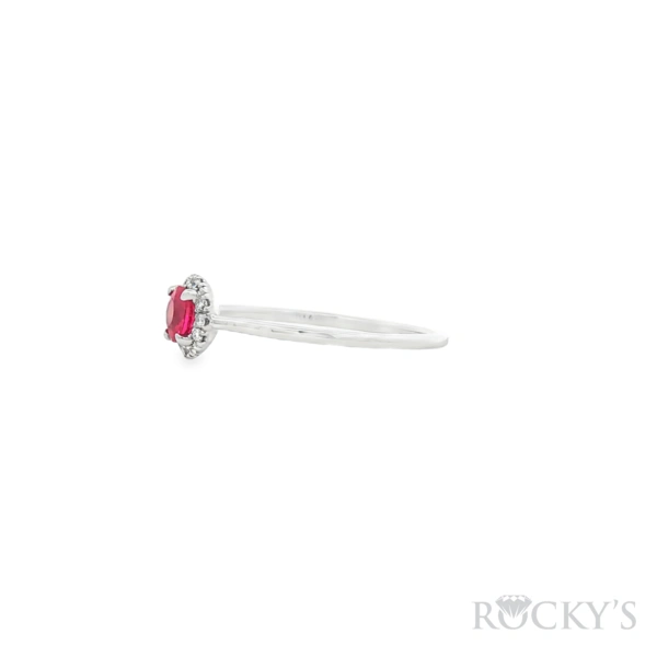White 14k Lusso Color Collection Gabriel Ring with 0.37Tw Round Shape Ruby and 0.06Tw Round Shape Diamond
