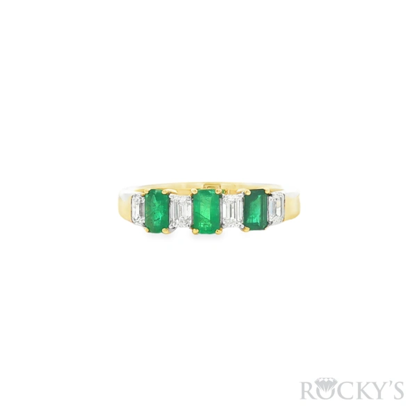 14 Karat Yellow Gold Emerald Ring with 0.80TWT Emerald Cut Green Emeralds