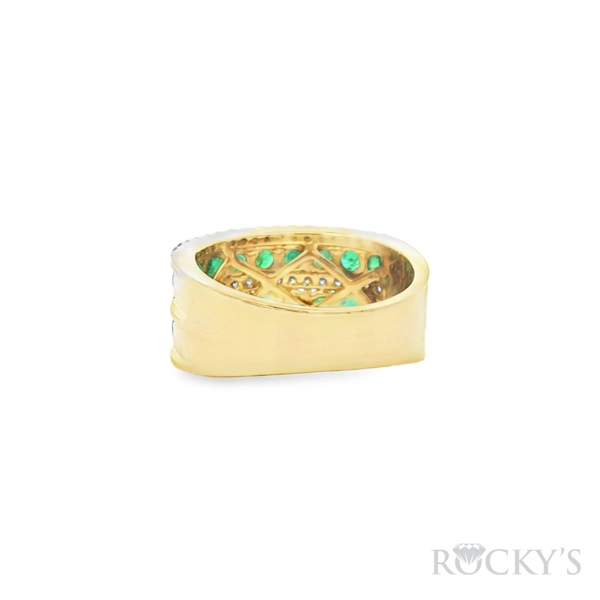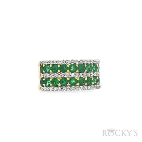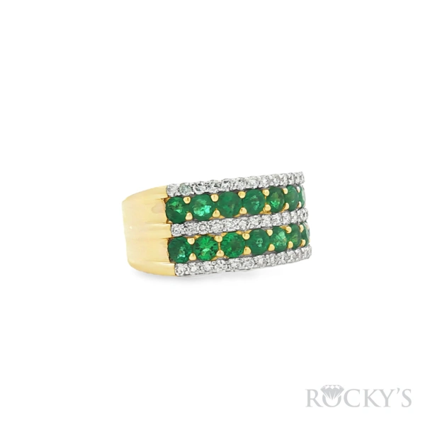 14 Karat Yellow Gold Emerald Ring Size 7.5 with 1.50TWT Round Cut Green Emeralds