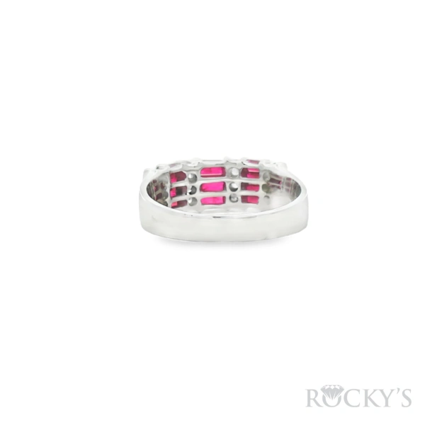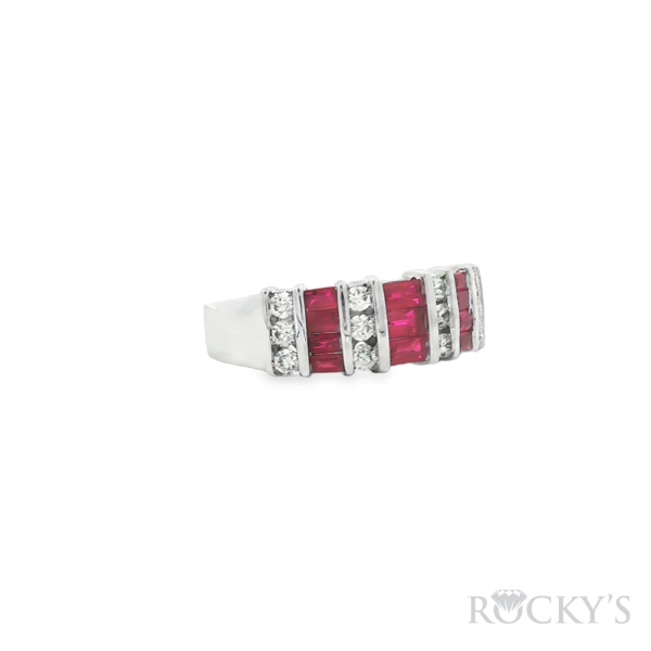 14 Karat White Gold Ruby Ring Size 7.5 with 0.755TWT Baguette Cut Red Rubies