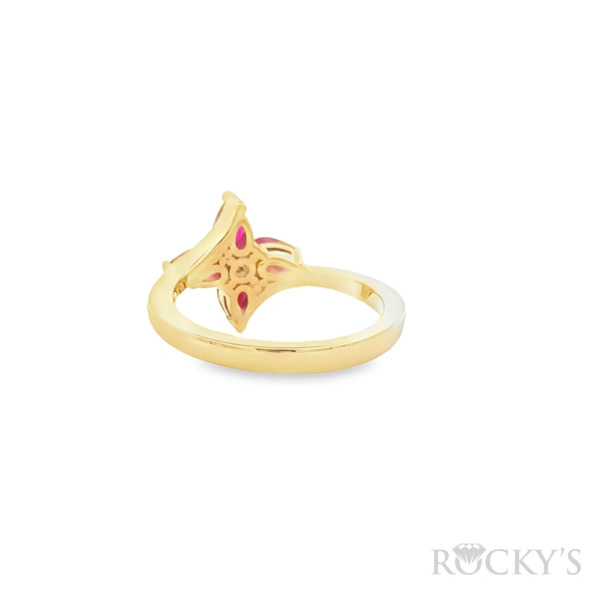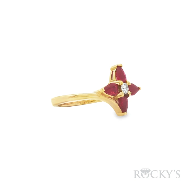 14 Karat Yellow Gold Ruby Ring Size 7.25 with 0.97TWT Pear shape Red Rubies