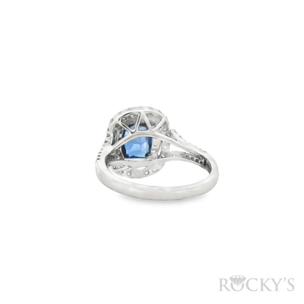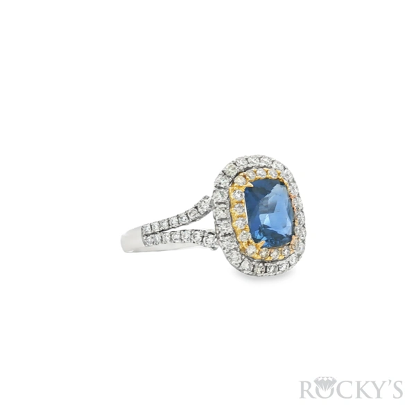 14 Karat 2Tone Gold Sapphire Ring Size 7 with 1.62TWT Cushion Cut Blue Sapphires