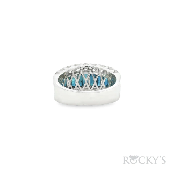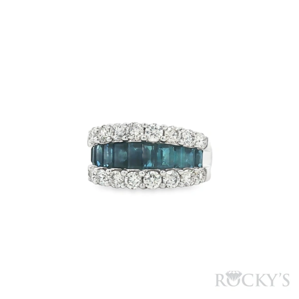 14 Karat White Gold Sapphire Ring Size 7.5 with 2.54TWT Baguette Cut Blue Sapphires