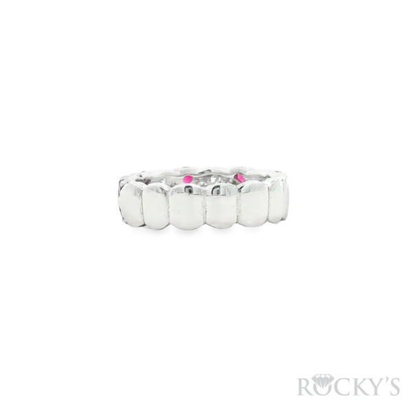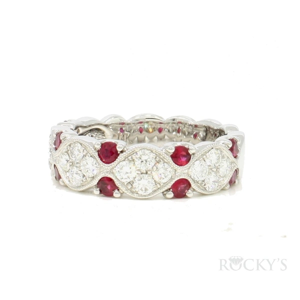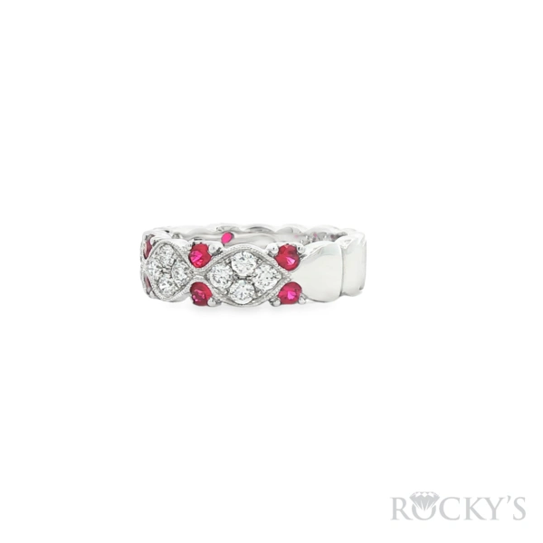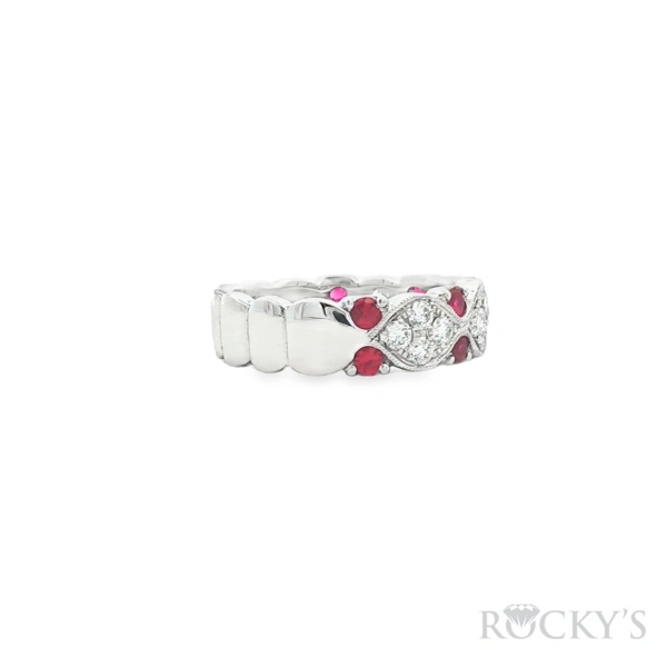 14 Karat White Gold Ruby Diamond Ring With 0.56Twt Round Cut Red Rubies And 0.60Twt Round Cut G/H Color & SI Clarity Diamonds
