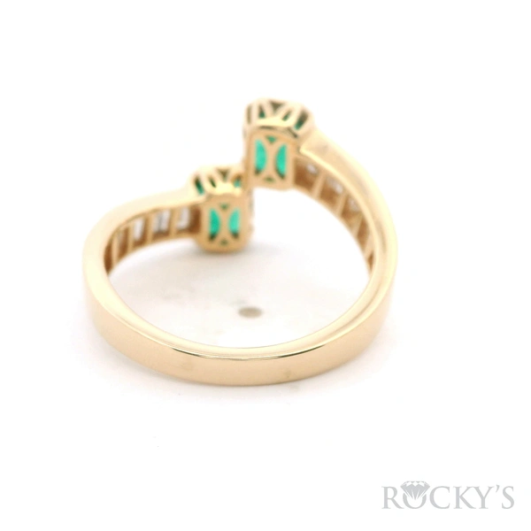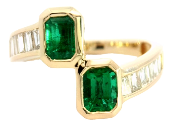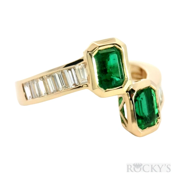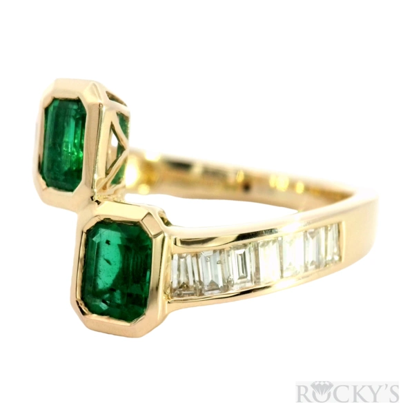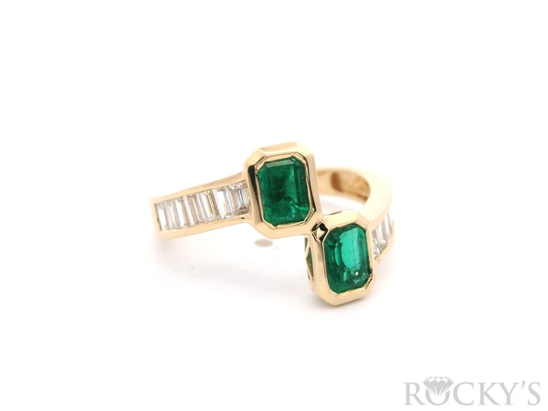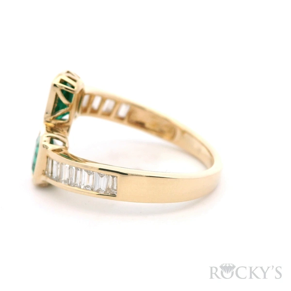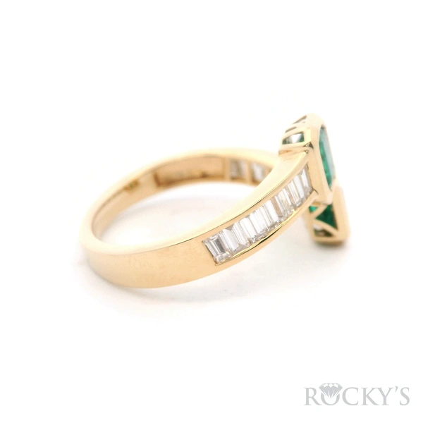 14 Karat Yelow Gold Zambian Emerald Ring with 0.94Tw Emerald Cut Emerald and 0.69Tw Baguette Cut Diamonds SI Clarity & G/H Color