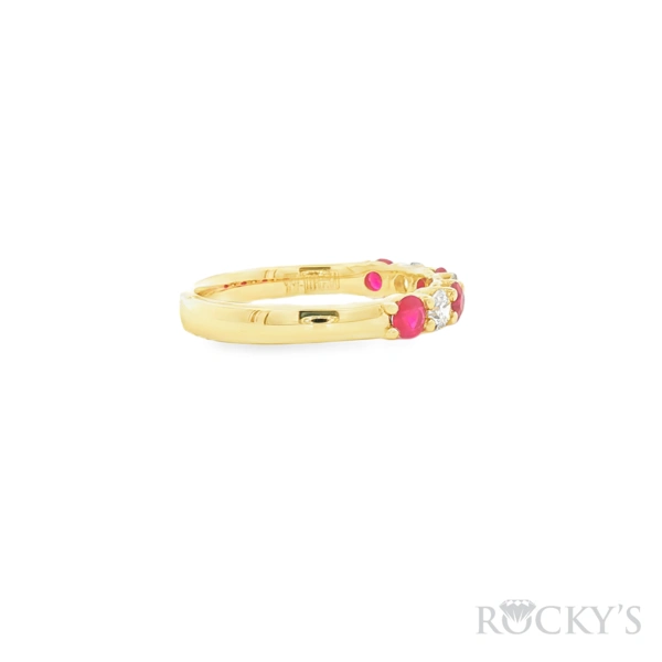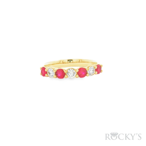 14 Karat Yellow Gold Ruby Ring Size 7.5 with 0.62TWT Round Cut Rubies and 0.37TWT Round Cut G/H Color SI Clarity Diamonds