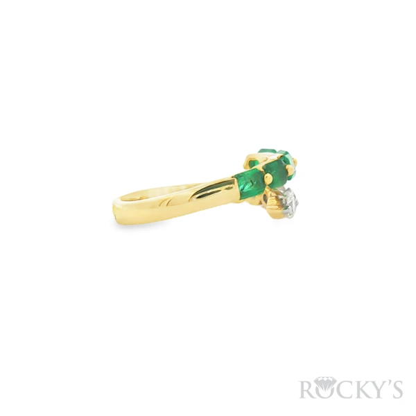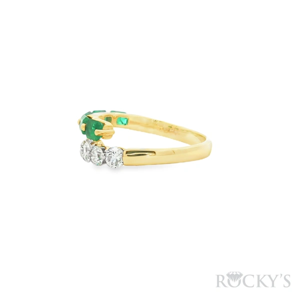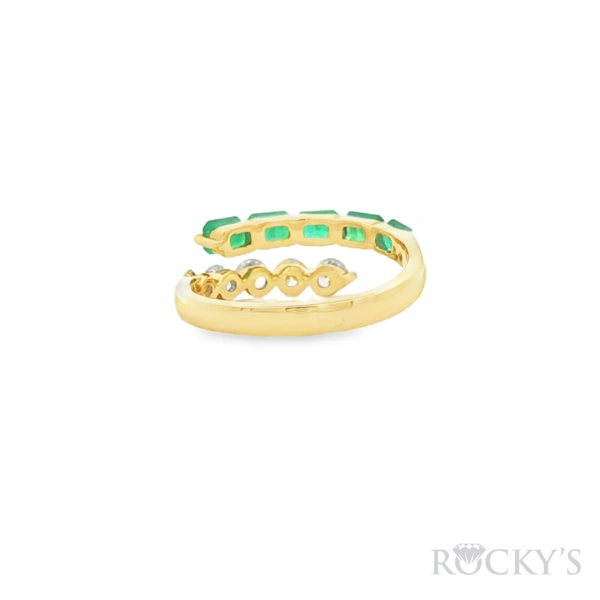 14 Karat Yellow Gold Emerald Flexible Ring Size 7 with 0.98TWT Emerald Cut Emeralds
