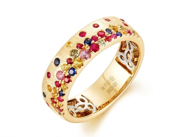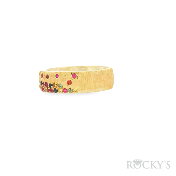 14 Karat 2Tone Gold Multi Color Sapphire Ring Size 7 with 0.66TWT Round Cut Multi Color Sapphires
