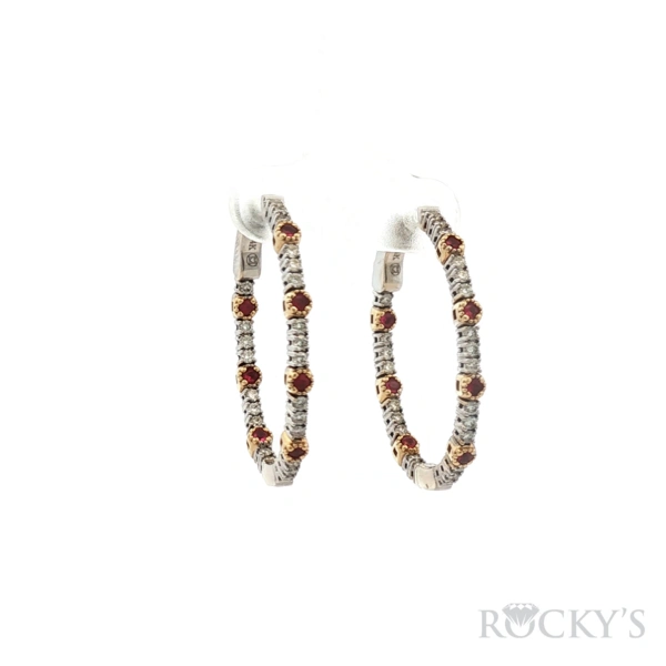 Yellow 14k Ruby Earring with 0.63Tw Round Shape Diamond and 0.31Tw Round Sha pe Ruby