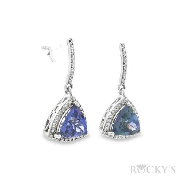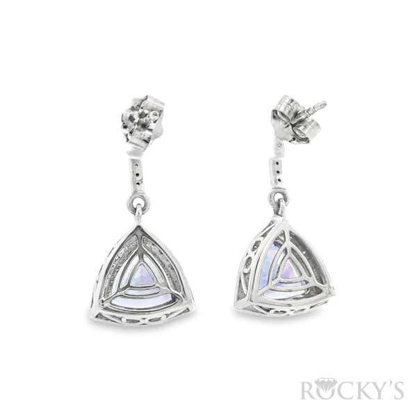 White 14k Tanzanite Earring with 3.48Tw Trillion Cut Tanzanite and 0.38Tw Ro und Shape Diamond