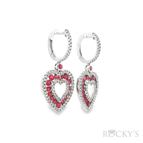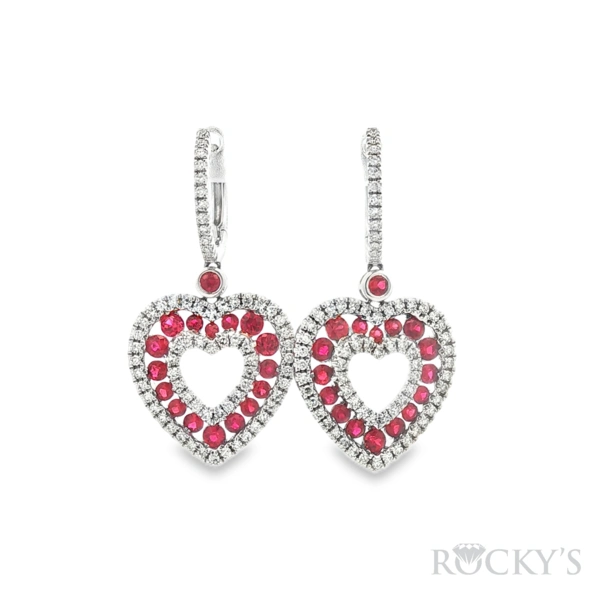 14kt White Gold Rubies & Diamond Earrings with 1.68ct Rubies and Diamonds