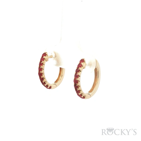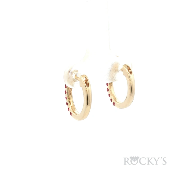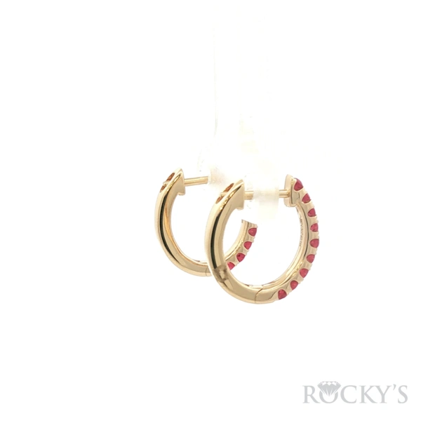 Yellow 14 Karat Color Stone Earrings With 0.64Twt Round cut Red Rubies Earrings, Small Huggies