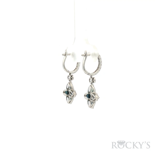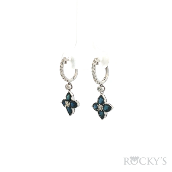 18 Karat White Gold Color Stone Sapphire Dangle Earrings With 8/1.747ctw Pear shape Blue Sapphires And 22/0.249ctw Round G/H Color & SI Clarity white Diamonds