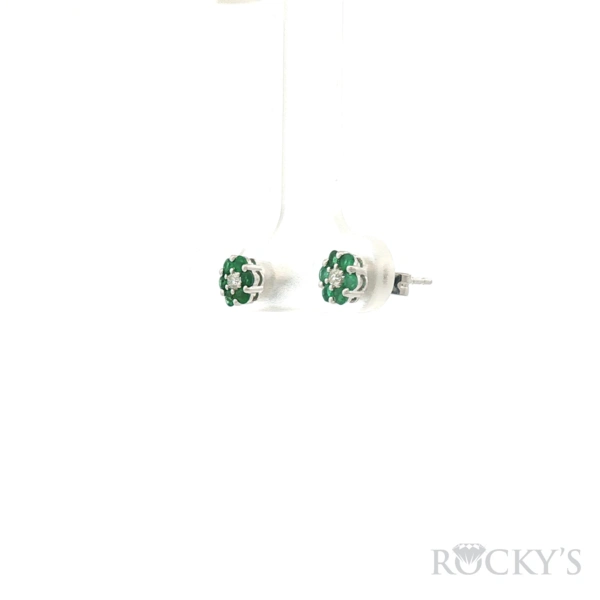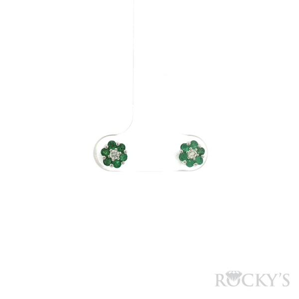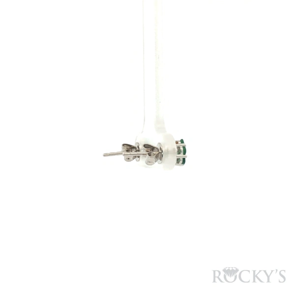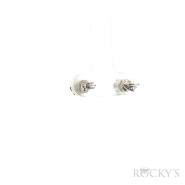 18 Karat White Gold Color Stone Emerald Earrings With 12/ 0.324ctw Round Green Emeralds And 2/1.05ctw Round G/H Color & SI Clarity white Diamonds