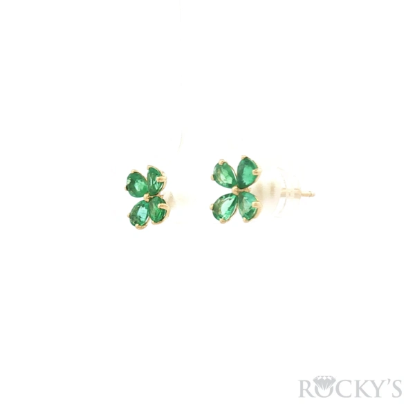 18 Karat yellow Gold Color Stone Emerald Earrings With 8/1.047ctw Pear shape Green Emeralds