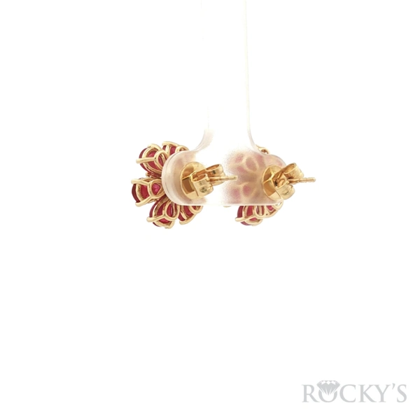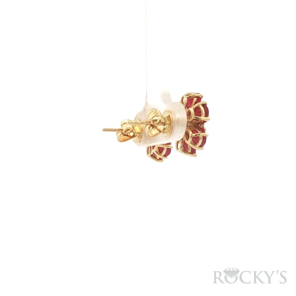 18 Karat Yellow Gold Color Stone Ruby Earrings With 12/4.061ctw Pear shape Red Rubies And 14/0.262ctw Round shape G/H Color & SI Clarity white Diamonds
