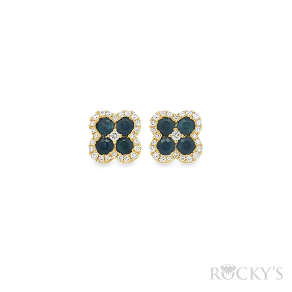 14 Karat Yellow Gold Sapphire Earring with 0.92TWT Round Cut Blue Sapphires