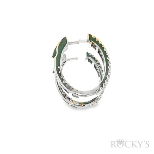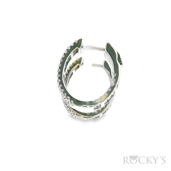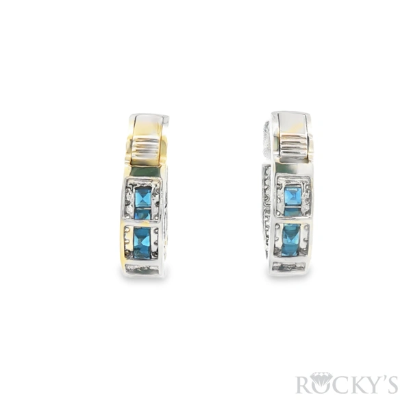 14 Karat white gold Sapphire Hoop Earrings with 2.46TWT Baguette Cut Blue Sapphires and 0.77TWT Round Cut G/H Color SI Clarity Diamonds