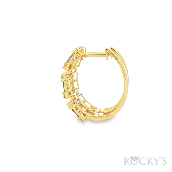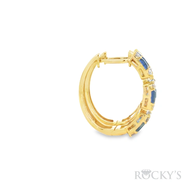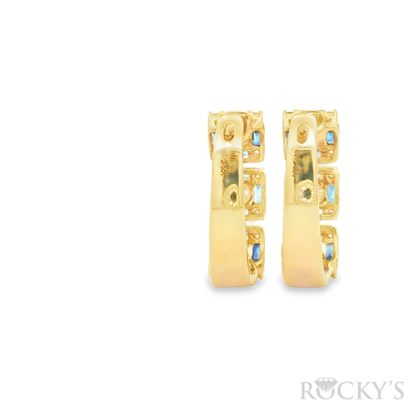 14 Karat Yellow Gold Sapphire hoop Earrings with 2.41TWT Baguette Cut Blue Sapphires