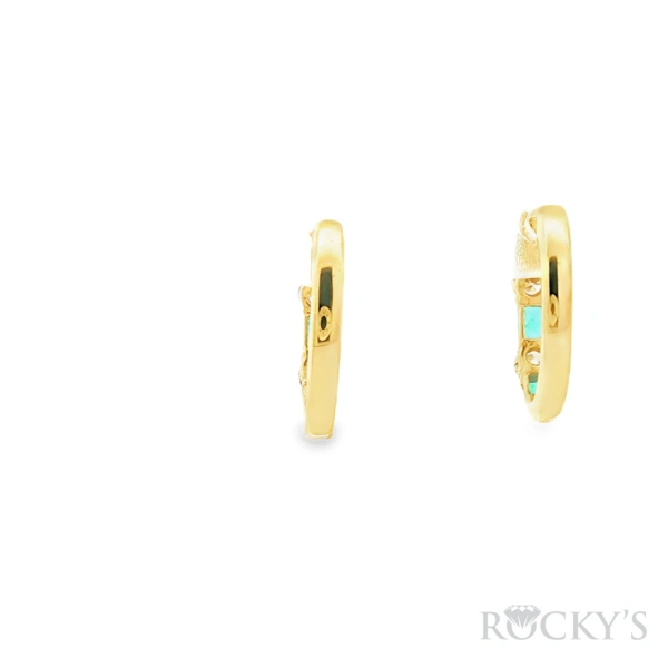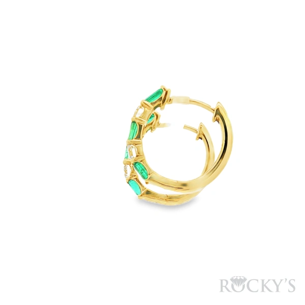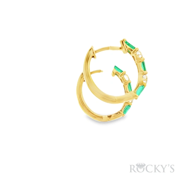 14 Karat Yellow Gold Emerald Earrings with 0.68TWT Baguette Cut Green Emeralds and 0.50TWT Round Cut G/H Color SI Clarity white Diamonds