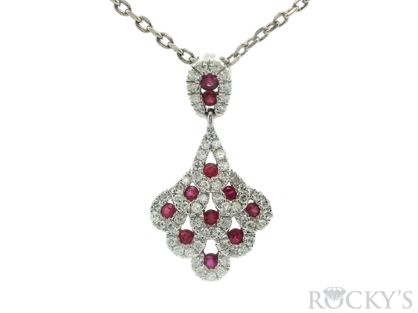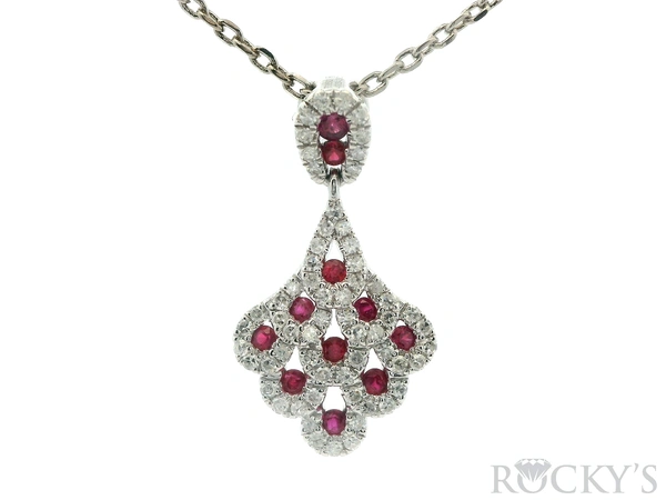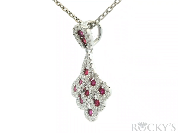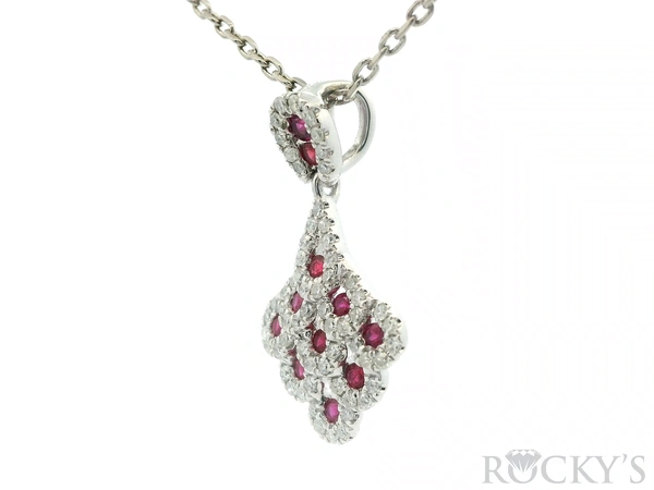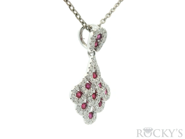 White Platinum Ruby Pendant with 0.37Tw Round Shape Diamond and 0.34Tw Round Shape Ruby