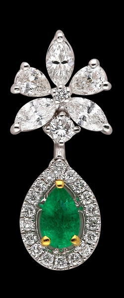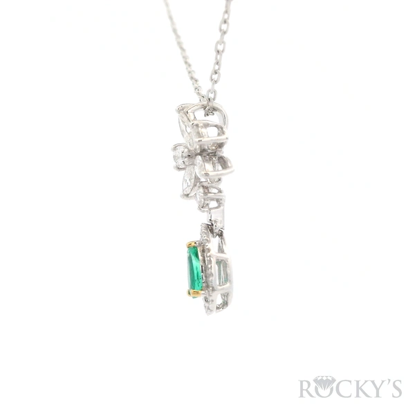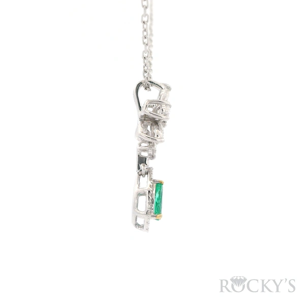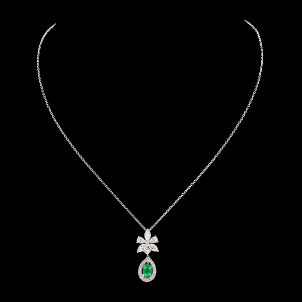 White Gold 18 Karat Necklace With One / 0.18Ct Pear GH SI Emerald And 25/ 0.44Tw Mix Shapes GH SI Diamonds. G.Wt:2.9 gm
