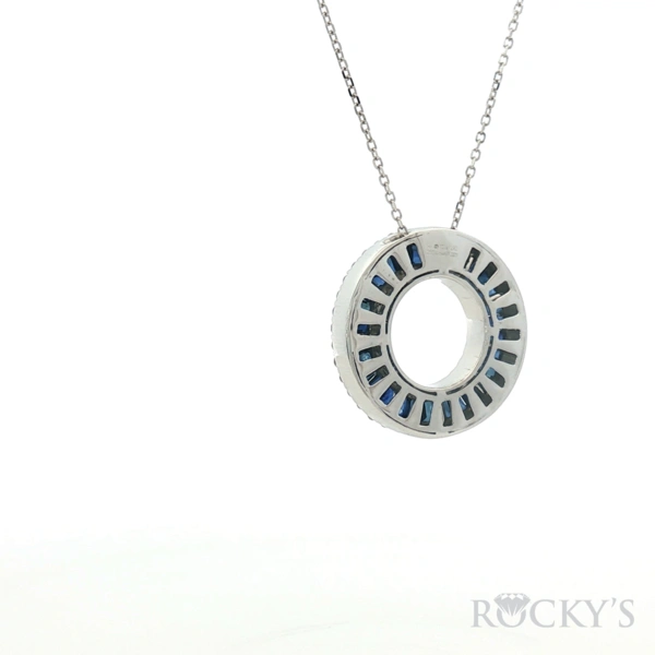 White 14 Karat Color Stone Necklace With 1.31Twt Tappered Blue Sapphires And 0.61Twt Round G/H SI White Diamonds