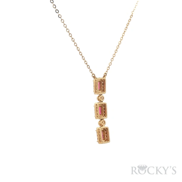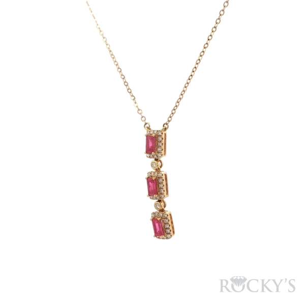 18 Karat Yellow Gold ruby Necklace With 3/0.803Twt Emerald Cut Red Rubies And 44/0.319ctw Round G/H Color & SI Clarity white Diamonds (18kt Yellow Gold, 16" Chain Included)