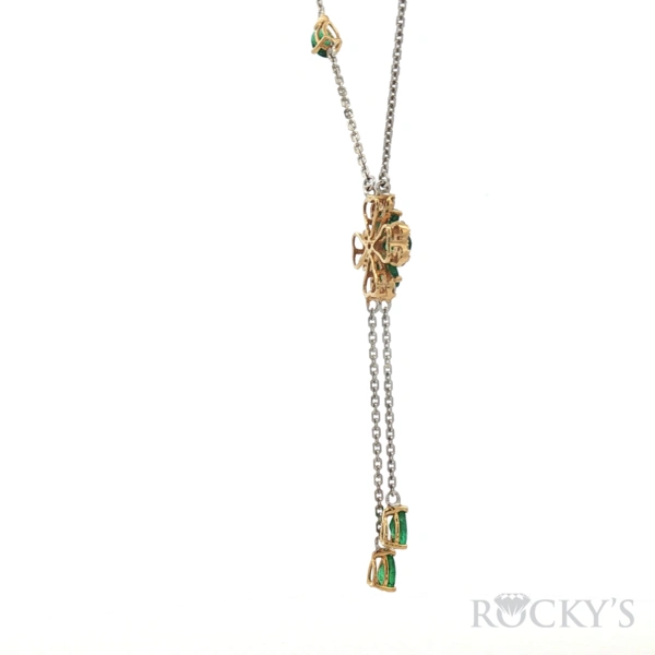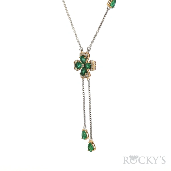 18 Karat 2Tone Gold color stone Necklace With 7/ 0.945ctw Pear shape Green Emeralds And 26/0.16ctw Round G/H Color & SI Clarity white Diamonds (18kt white Gold 16" Chian Included)